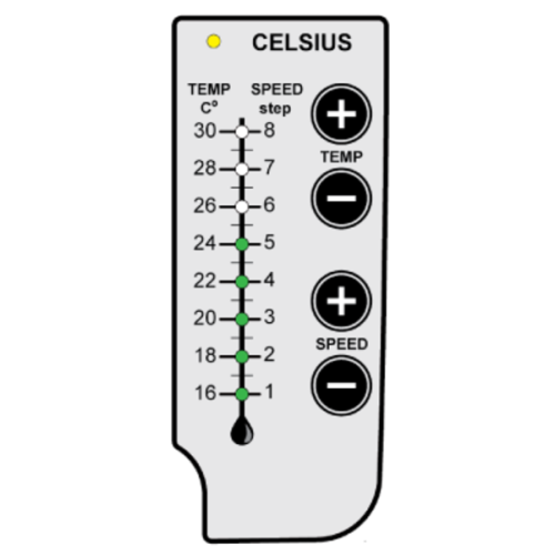 - Integrovaný termostat s rozsahem +16 až + 30°C