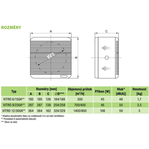 Nástěnný ventilátor VITRO 12/300 A pro okenní a nástěnnou instalaci s automatickou žaluzií