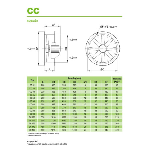 • Krátké provedení - Ventilátory CC jsou standardně v krátkém provedení (snadná doprava a instalace)